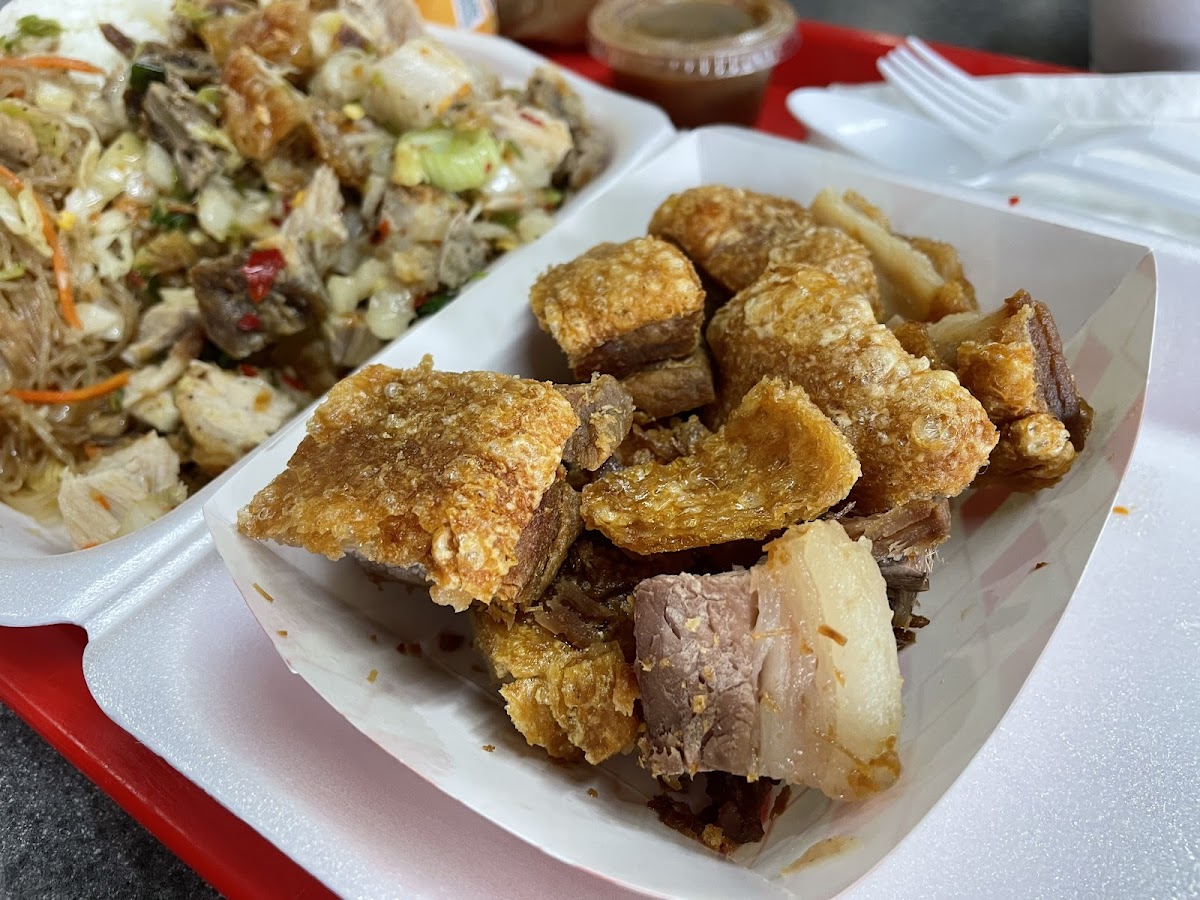 Pansit with Rice and Crispy Pork
